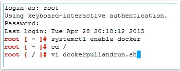 Now change directories to / and us vi to create a file named dockerpullandrun.sh