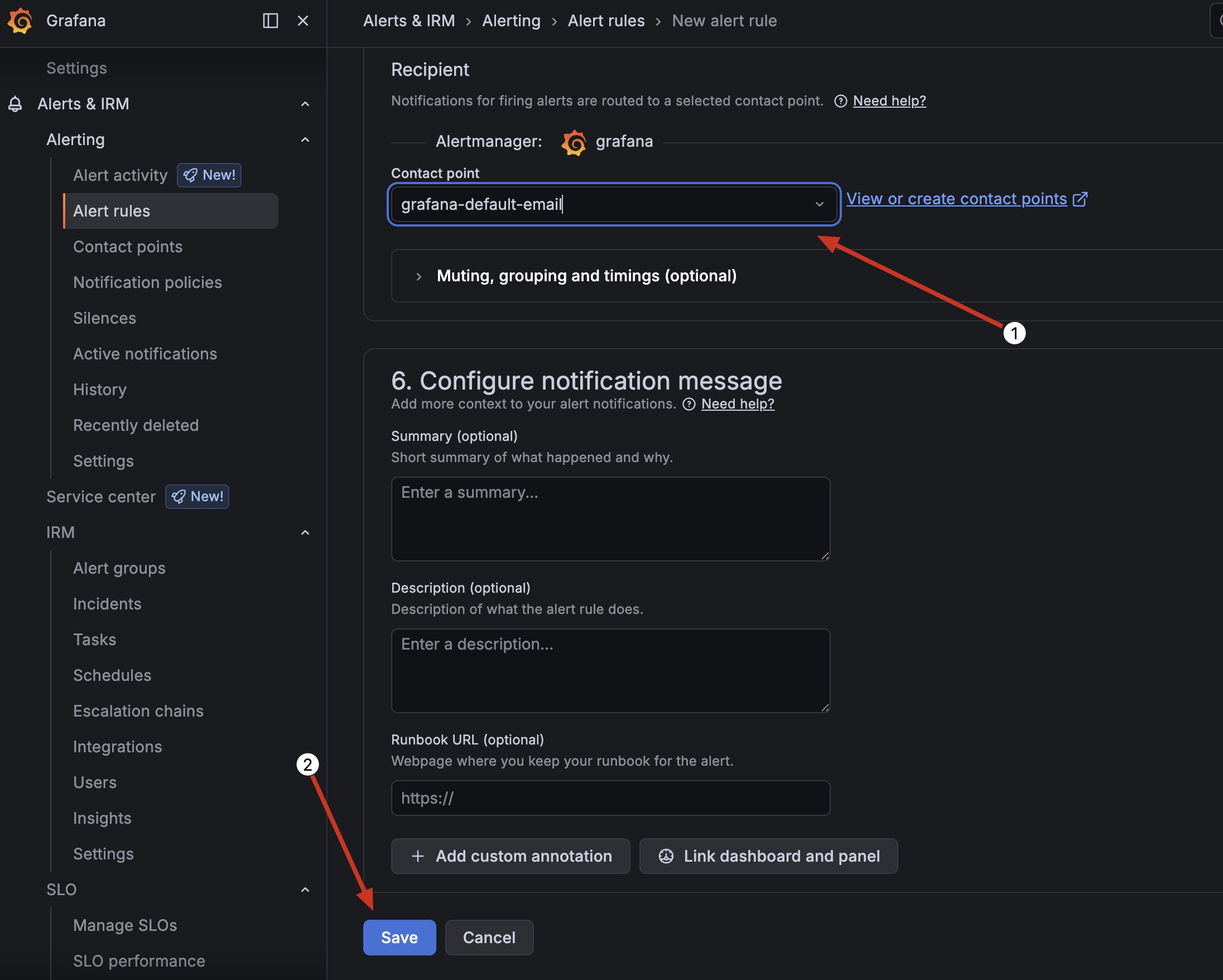Set the contact point and save it. I just used my e-mail address as the Contact Point