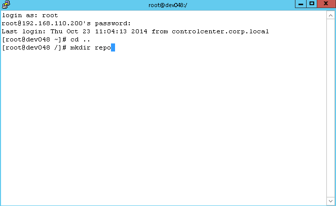 Power on your Linux guest agent template and login as root or sudo to root and create directory on the root file system named repo. This is where you will mount your NFS share to.