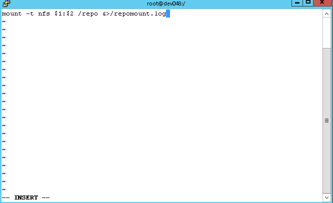 mount -t nfs $1:$2 /repo &>/repomount.log
