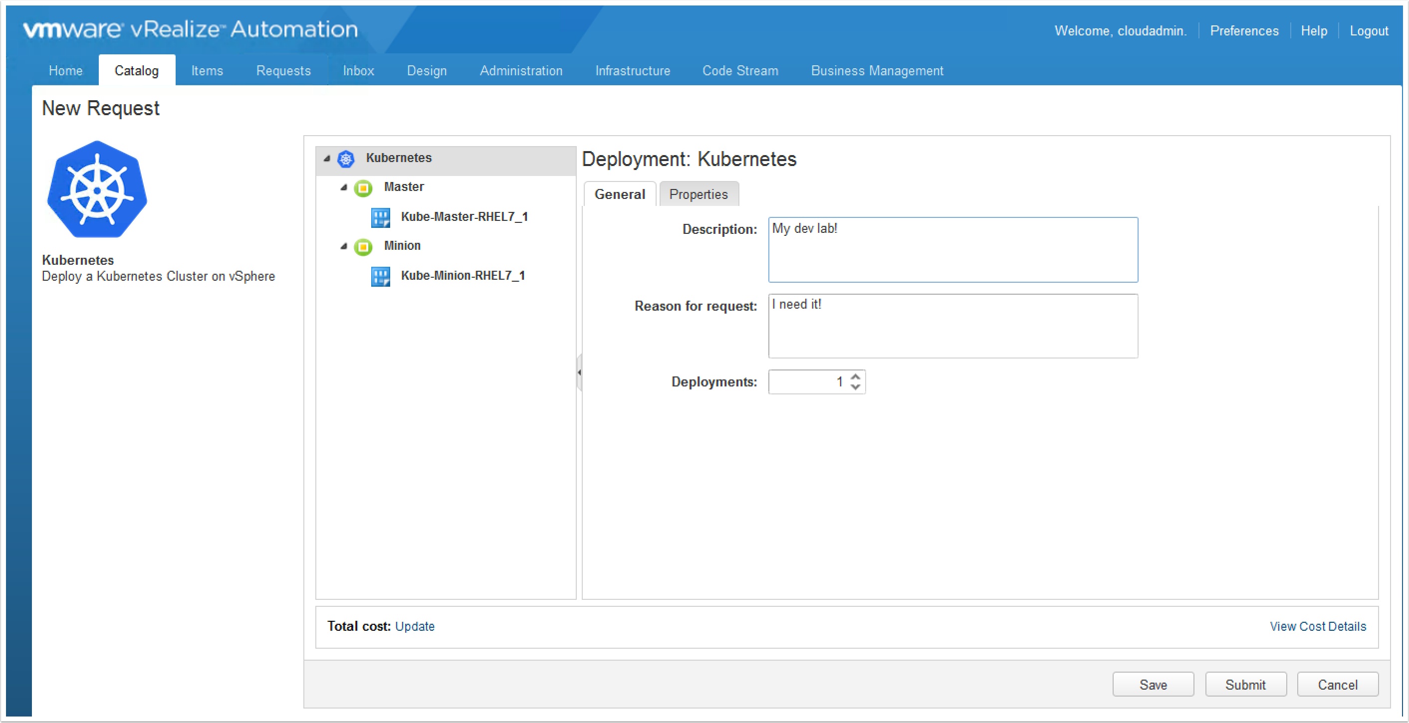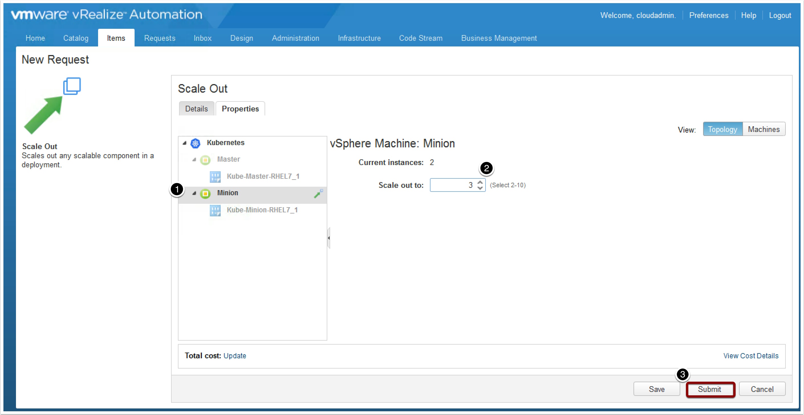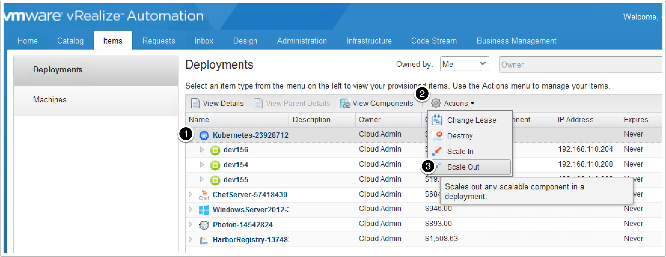 In this guide I will show you how to enable the new Scale out/in feature introduced in vRealize Automation 7.1 to allow your end users to scale their Kubernetes deployment in the portal. Let’s get started!