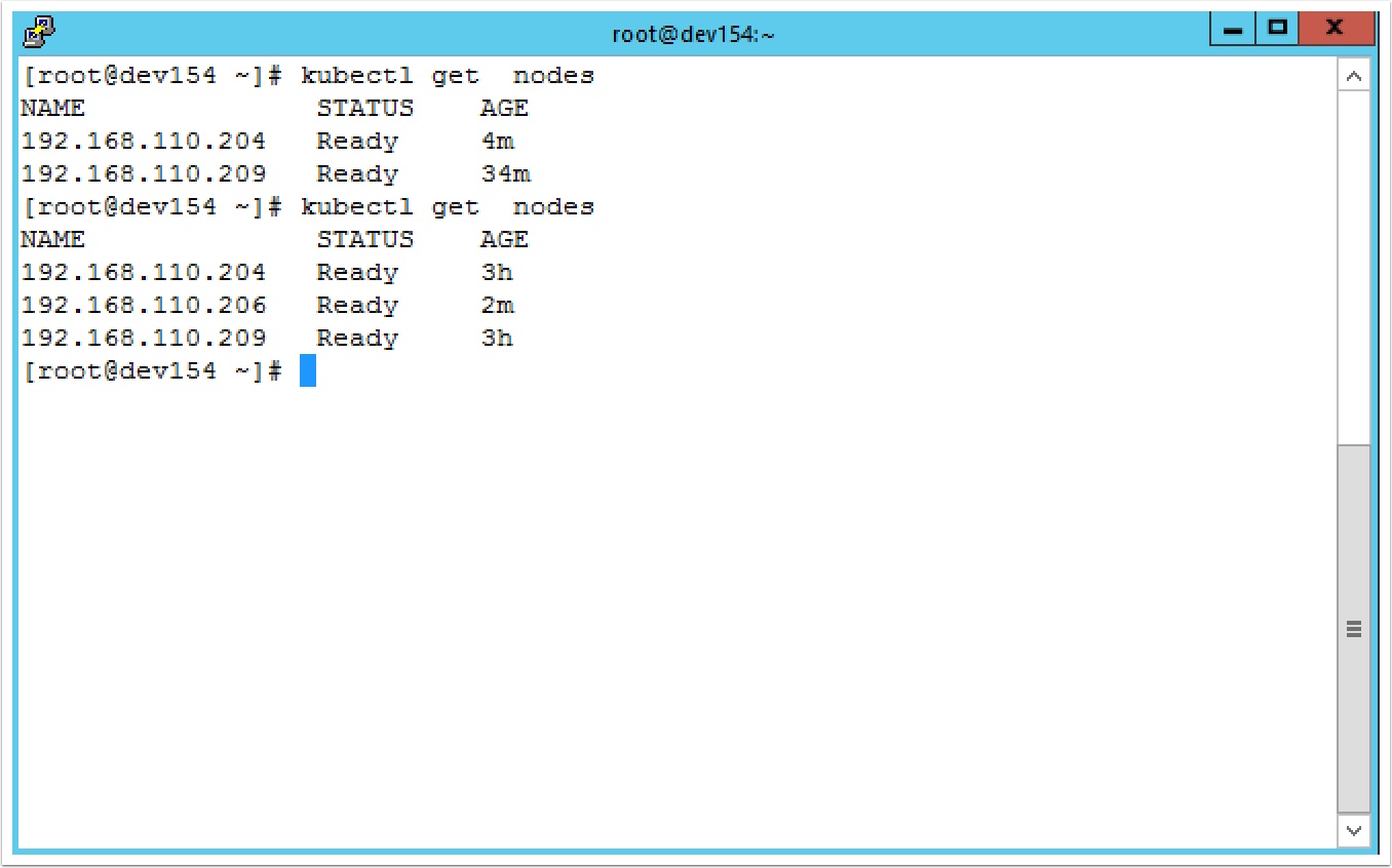 Open an SSH session to the master and type the following to list the current nodes.