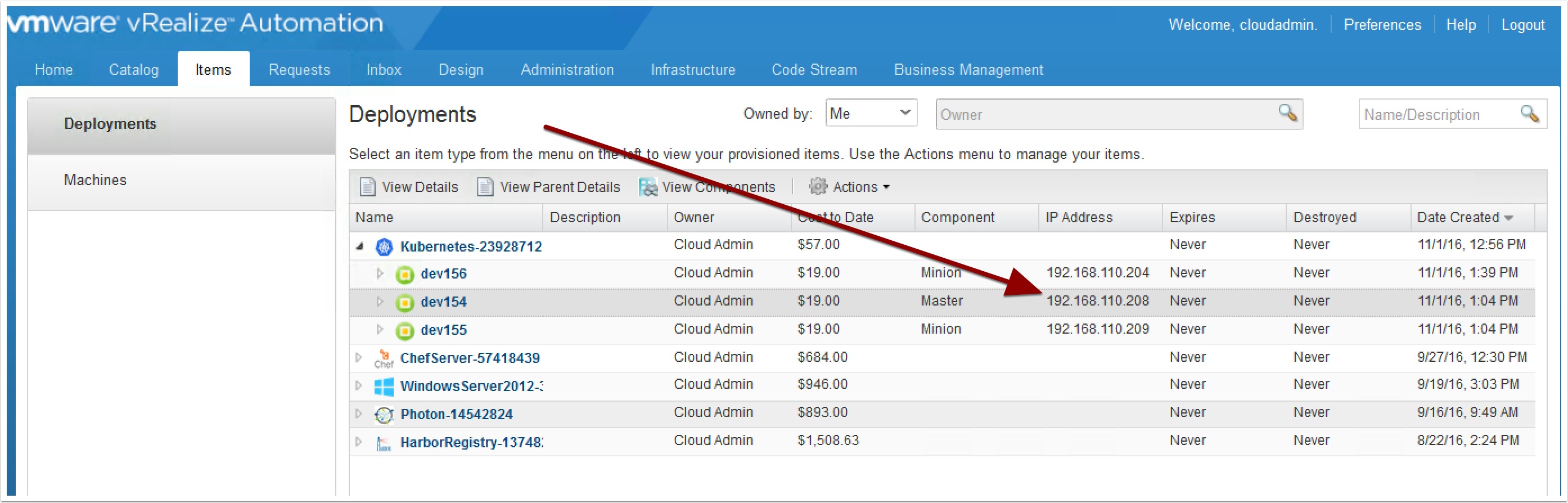 Once deployed, get the IP address of the Master Node