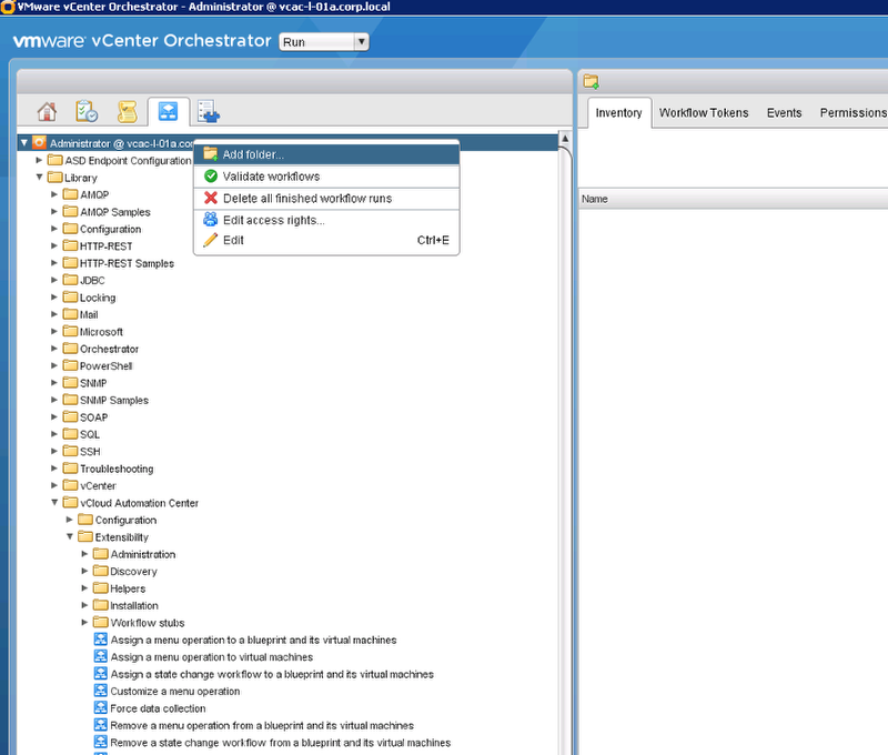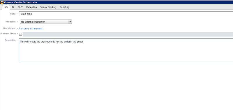 In this lesson we will use the vCAC to vCO extensibility that we setup in Part 1. In many customers that I work with provisiong the virtual machine and operating system are only one part of the problem. To fully automate the provisioning of infrastructure in any organization there are going to be additional tasks that need to occur. These tasks can occur both in the guest operating system after the VM is provisioned, for example running installation scripts in the guest to install management agents. Or outside the guest like adding the server to an Active Directory OU before the VM is added to the domain so the correct Group policy is applied. This is where vCO comes in. In this simple example I will show you how to pass properties from the vCAC blueprint and pass that into the guest operating system at provisioning time. This is a very powerful tool as you could use this to run your own scripts that you may already have. You would just need to modify those to accept a custom property as the argument for the script to run.