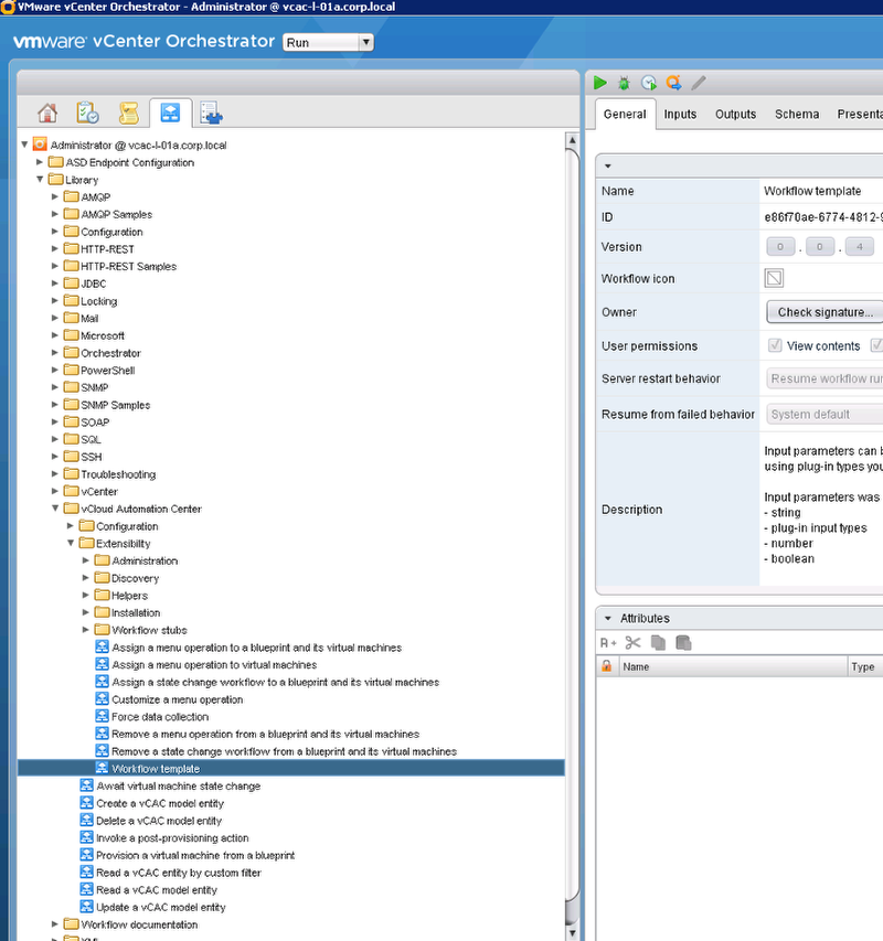 Hi folks, I am looking at it now. This may be a problem with the vCAC plugin version or vCO build I am using as compared to yours. I will post update as soon as I figure it out. Sorry for the inconvenience this may have caused.