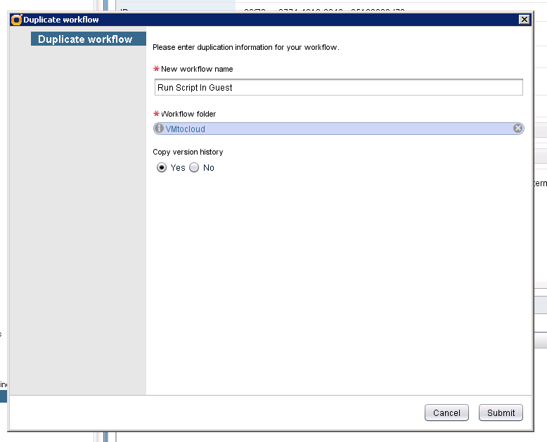 Right click and Duplicate the Workflow Template to a your folder and give it a new name Run Script in Guest