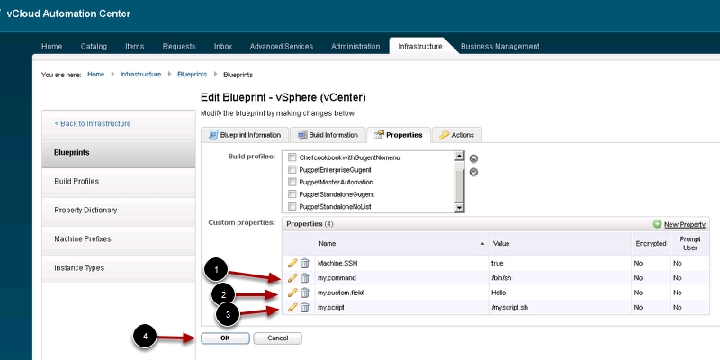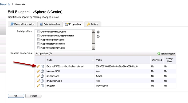 Now let’s login to vCAC and add some custom properties to our Blueprint. We will pass these properties to vCO to run a command in the guest VM at provisioning time.
