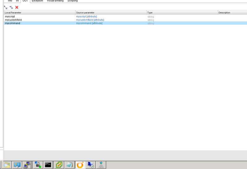 Now change to the Out tab and click to create three new attributes named myscript mycustomfield, mycommand