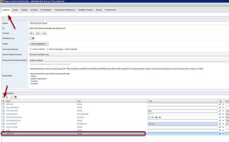 Workflow ‘WFStubMachineProvisioned’ failed with the following exception: Error executing vCenter Orchestrator workflow: ReferenceError: “VMowner” is not defined..