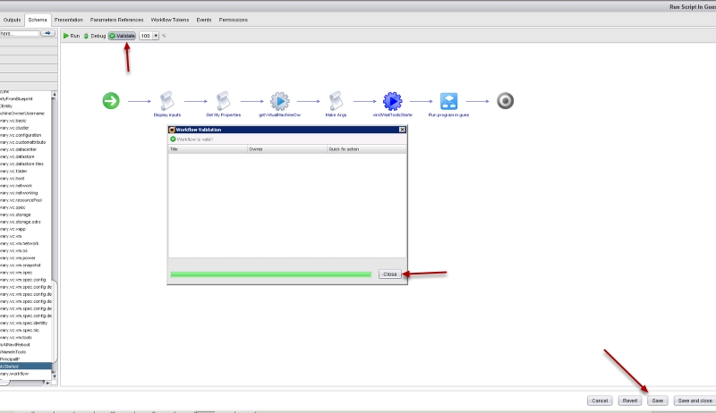Now go back the the schema tab and click validate, you should see the following screen, if not review your workflow otherwise and Save and Close