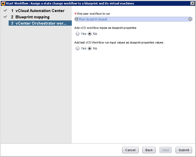 Download the workflow here: org.vmtocloud.runscriptinguest.zip