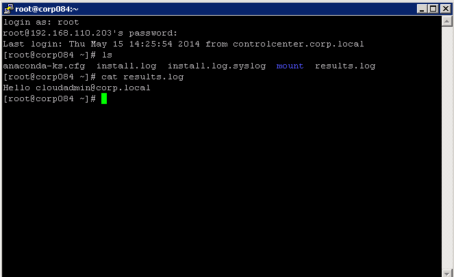 Fire off a new request and when you login to the provisioned VM you should see that the script executed with the following in results.log