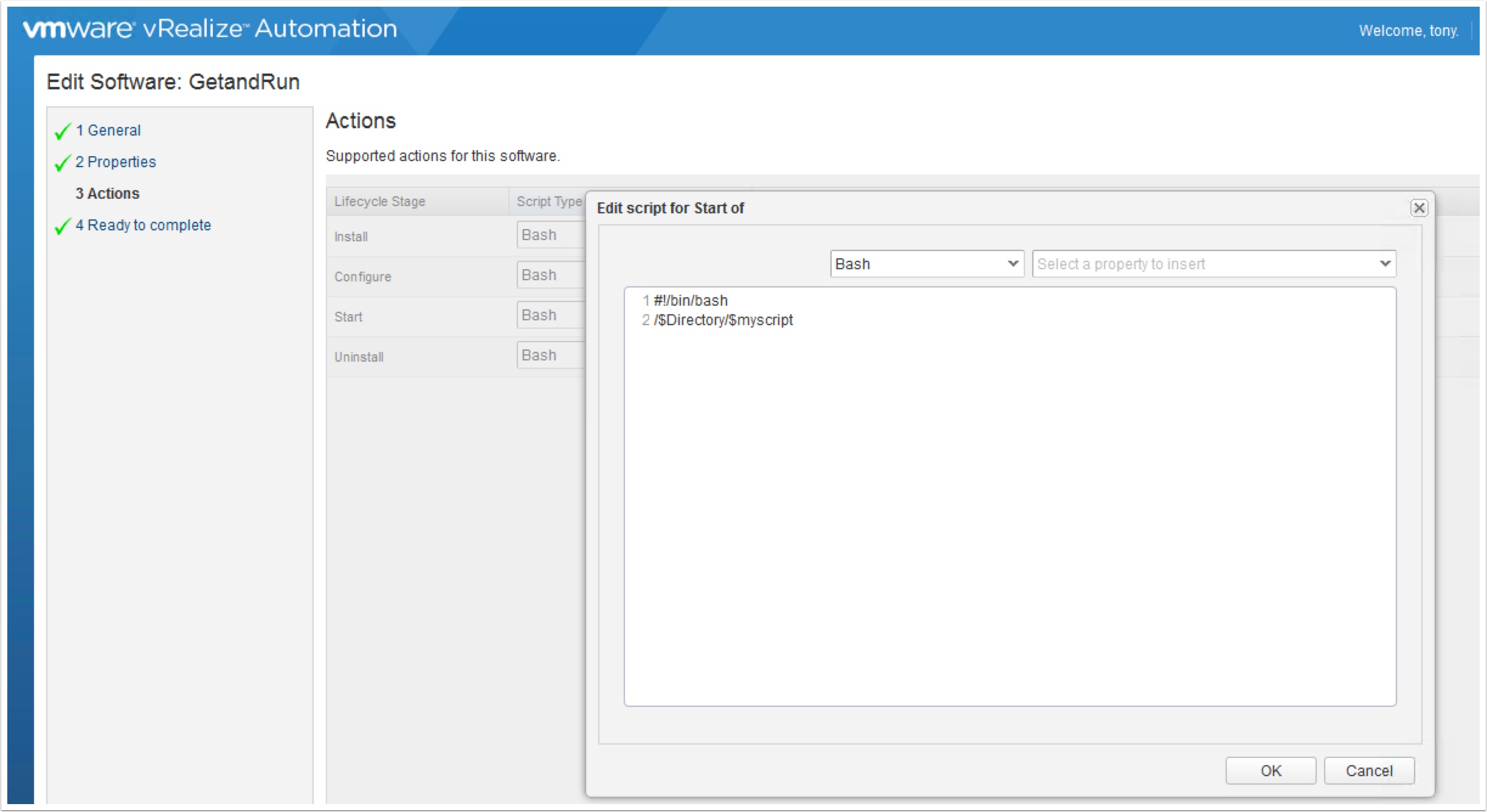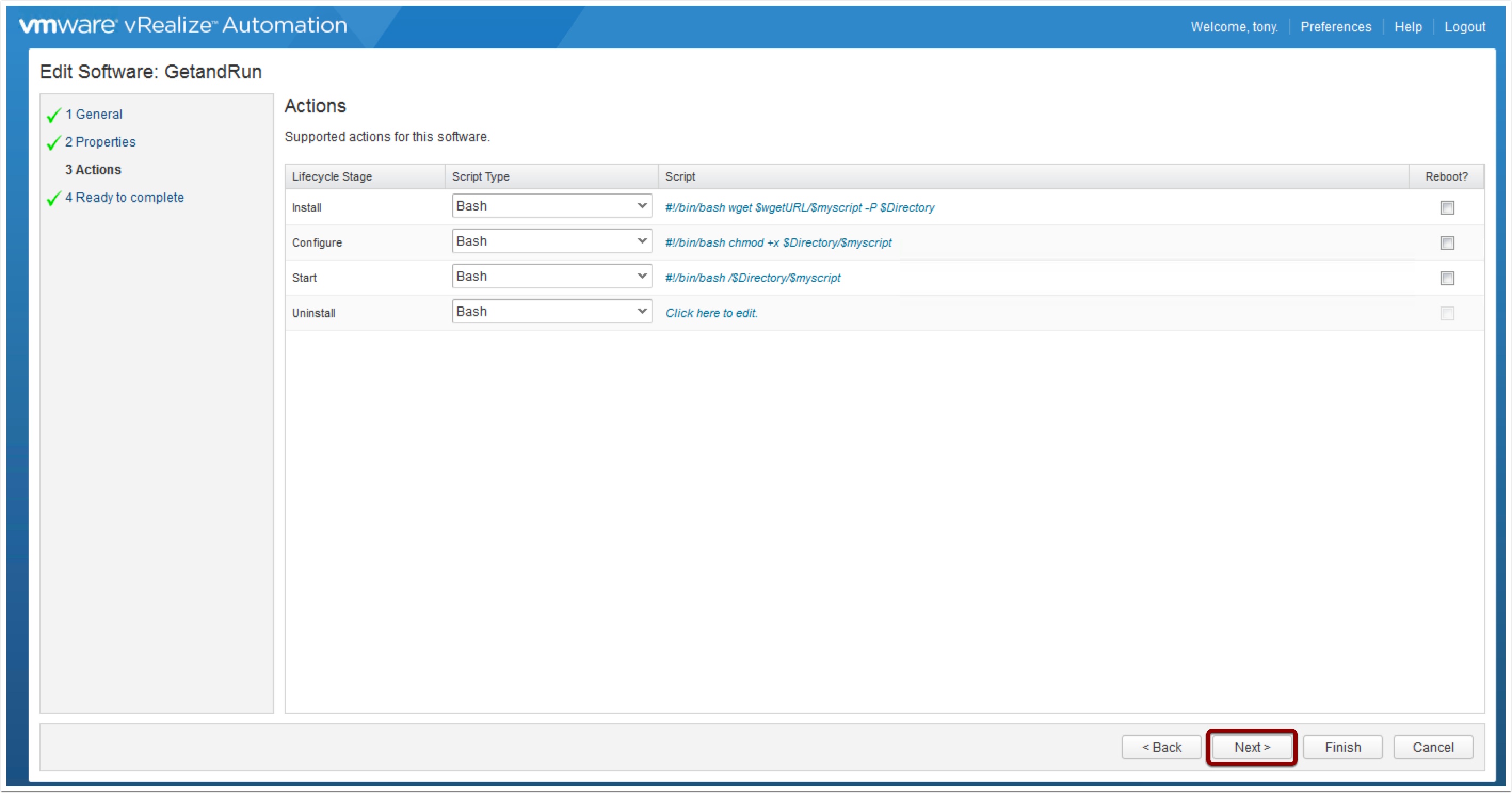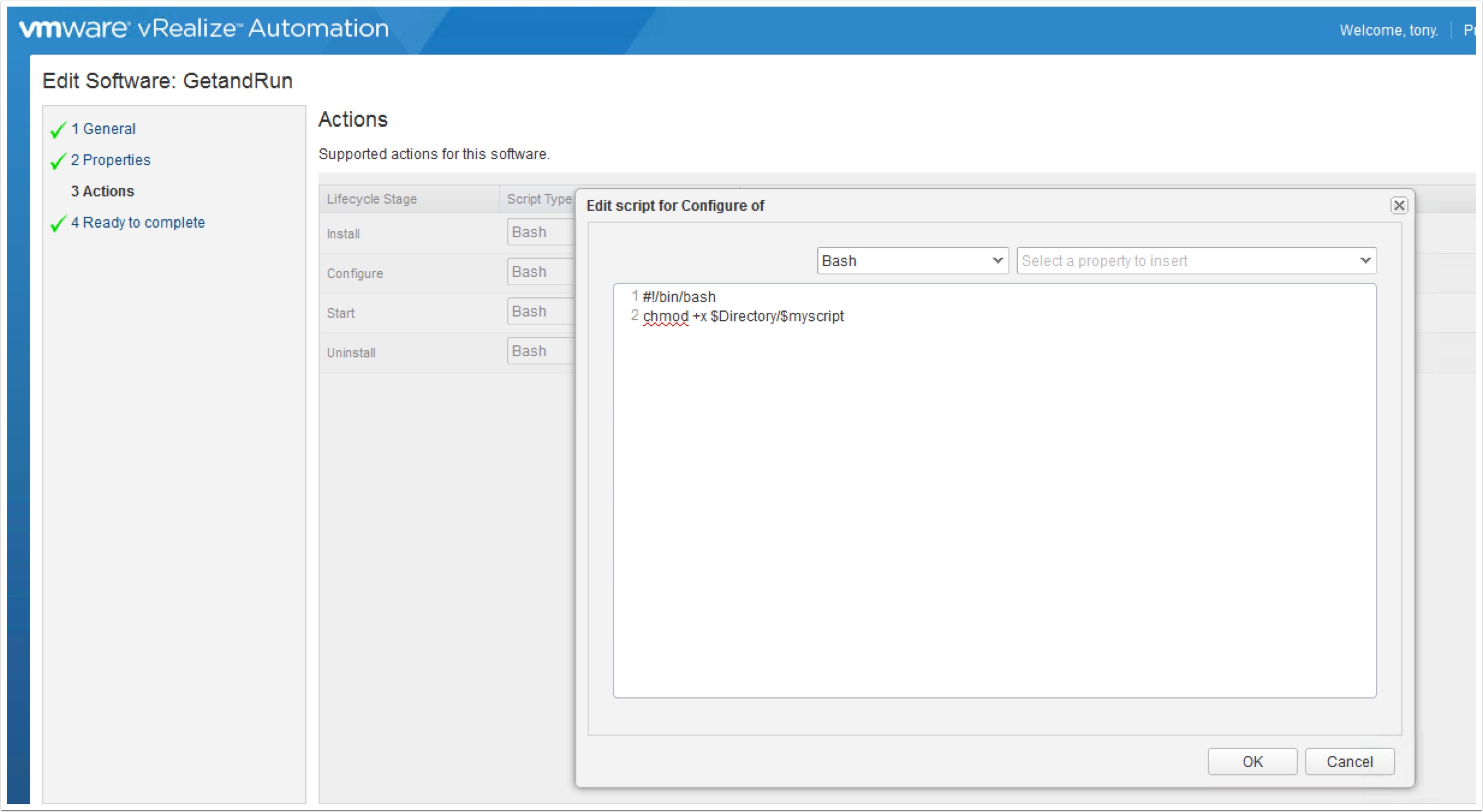 This guide will show you how to build a blueprint that will allow the developer to request a new Linux VM, in the request they can input the URL for their HTTP web server, specify the file to get and the working directory to execute it in and have it run commands on the Linux VM at provisioning time. This can be used to build simple installations like Apache Web Server or more complex application installations and configurations.
