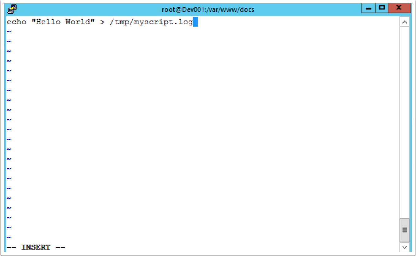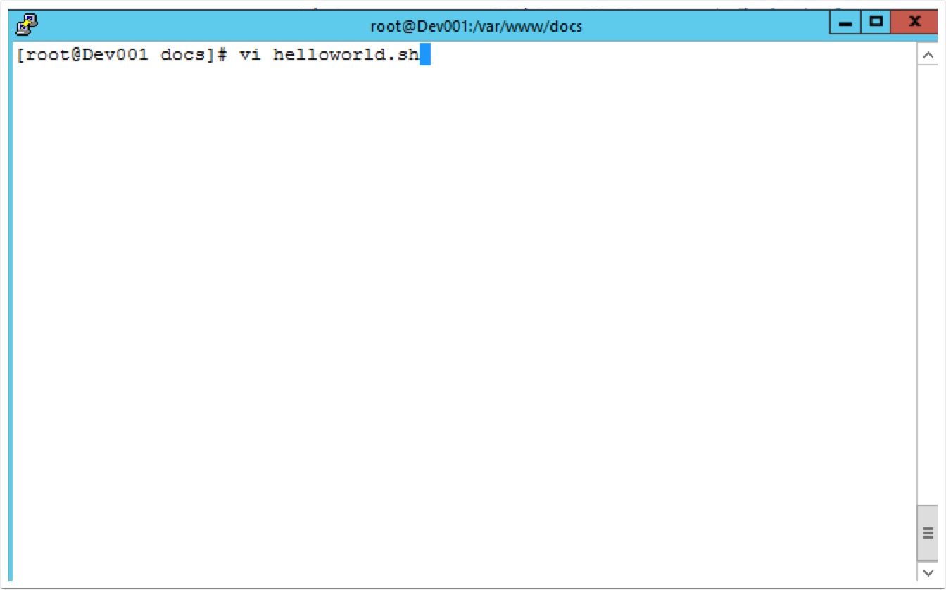 Now, before we fire off a new request let’s create a shell file on our HttP file server. SSH into that box and change to the directory that is serving files and use vi editor to create a new shell file named helloworld.sh