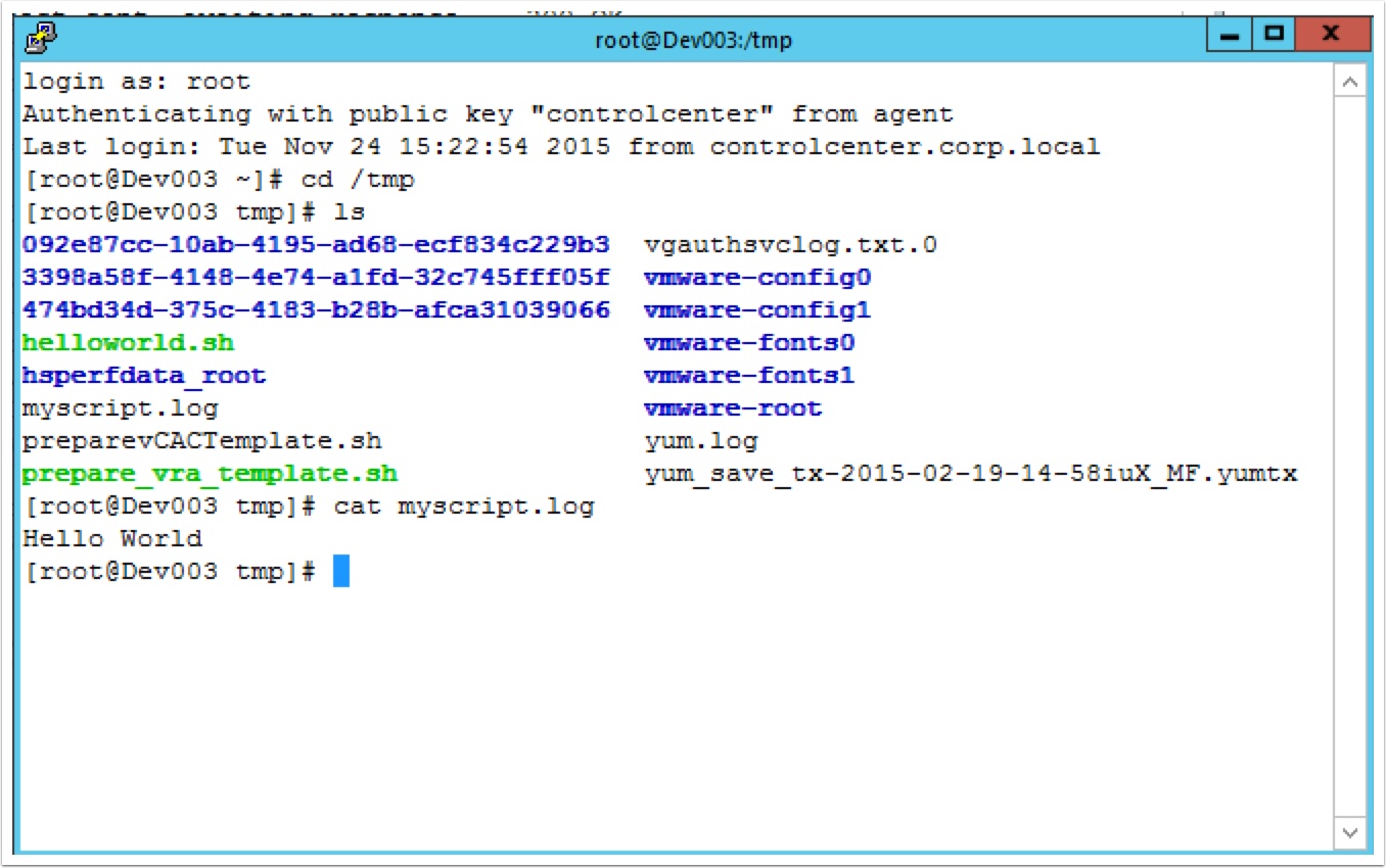 Once the request complete successfully SSH into the new VM and check that the file executed as expected
