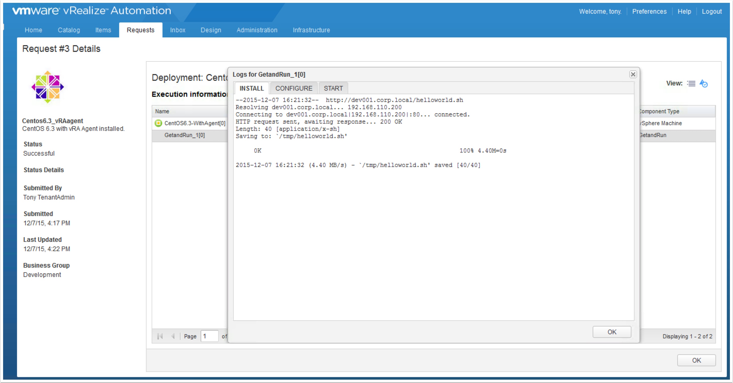 You have now successfully created a developer friendly blueprint. In Part II we will show you how to request this blueprint from the command line use the vRealize Automation REST API.